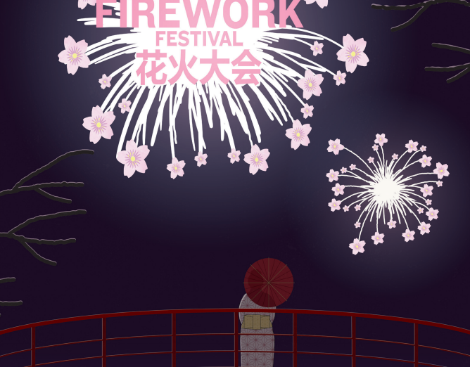 The Tokyo Firework Festival’s logo and poster artfully blend the excitement and spectacle of the fireworks displays with Tokyo’s vibrant energy and cultural richness, beckoning viewers to immerse themselves in the magic of Tokyo’s fireworks extravaganza.